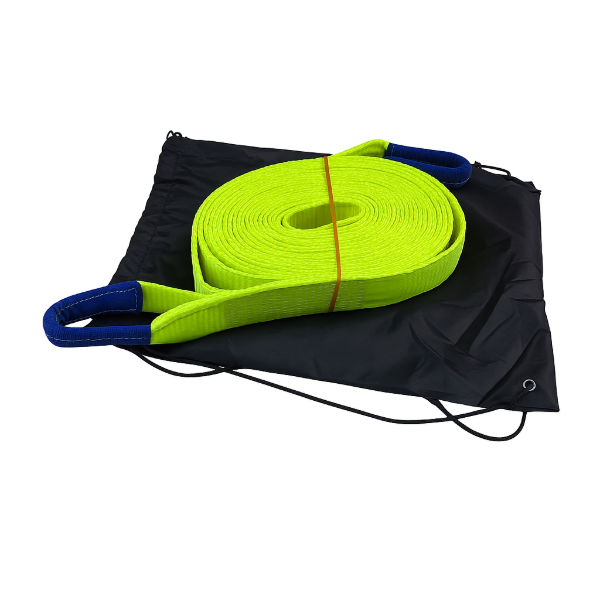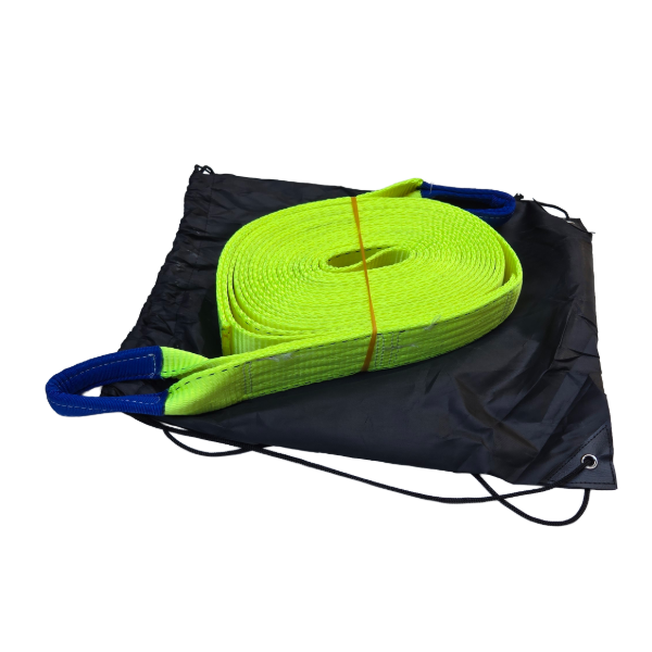 Linga de remolque y rescate fabricada en poliéster de alta resistencia, diseñada para uso en 4x4, camionetas, UTV o vehículos pesados.